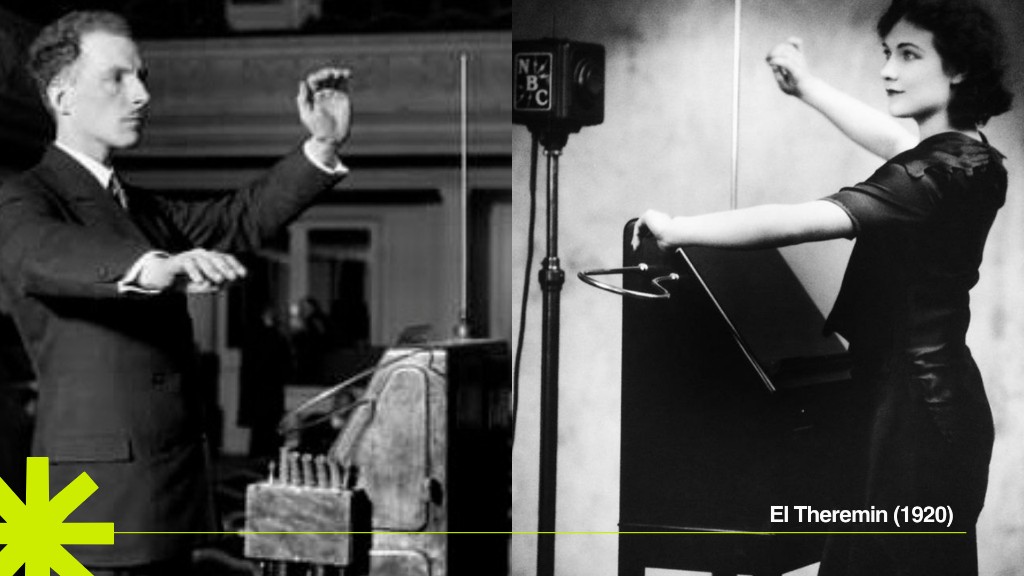 El primer instrumento 100% electrónico, creado por Léon Theremin. Se toca sin contacto físico, interactuando con campos electromagnéticos.