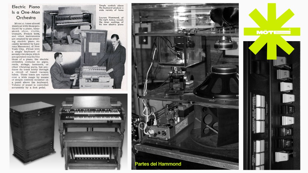 Este instrumento no era electrónico en el sentido moderno, sino electromecánico: generaba sonido mediante enormes ruedas metálicas giratorias llamadas "tone wheels" que producían señales eléctricas convertidas en sonido a través de altavoces.